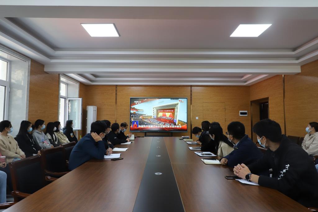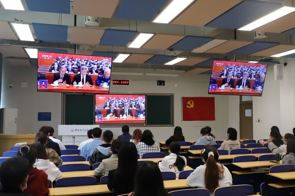 10月16日上午,公共管理公司党委组织全公司党员师生观看了中国共产党第二十次全国代表大会开幕会直播。388vip太阳集团班子成员及全体行政支部和员工代表于公司二办301线下集中观看本次直播。全体2022级新生分别于第三教学楼A202、A203、A204和A208观看,员工第一第二党支部于第三教学楼A103观看,其余党支部和班级组织集体线上观看。