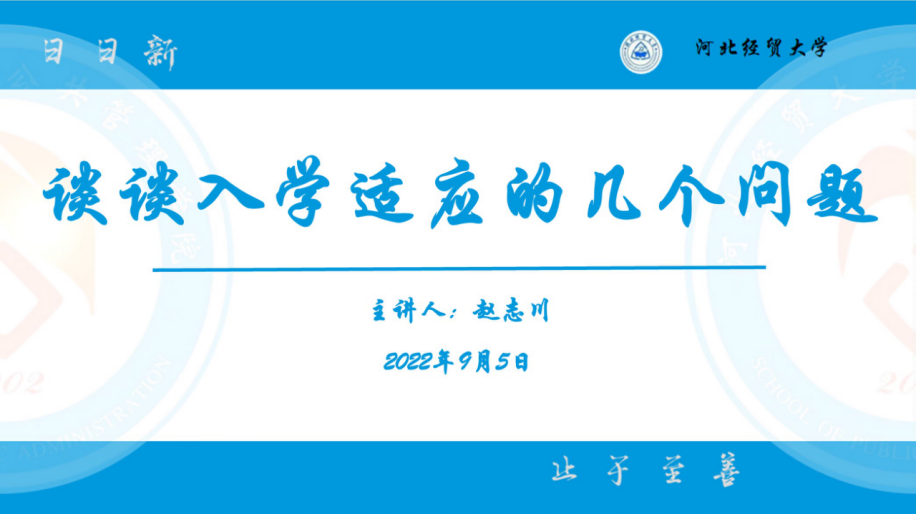 为让大一新生更好适应即将开始的老员工活,9月5日下午,388vip太阳集团采取线上会议的方式举办了“2022公管讲堂”第二讲之谈谈入学适应问题。本次讲座由公司辅导员张素桥主持,正处级辅导员赵志川主讲。2022级全体新生参加了此次线上会议。