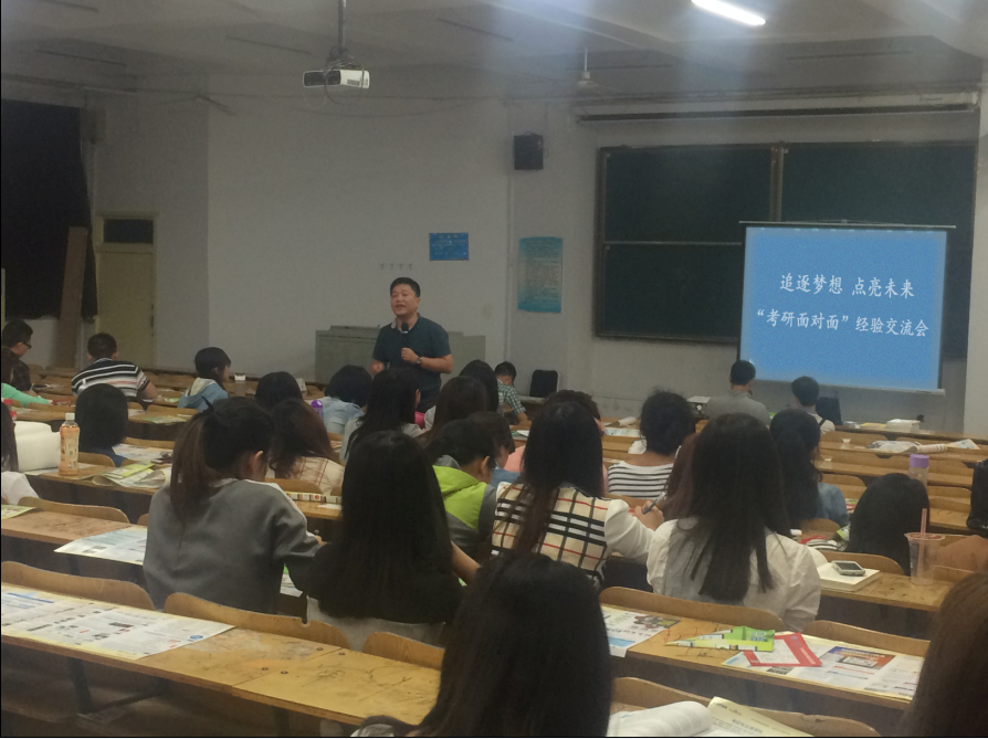 5月26日晚,388vip太阳集团在五教一教室举办了“考研面对面”经验交流会。邀请研究生代表和2011级考研成功的同学分享了自己的考研经验,200余名同学参加了此次交流会。