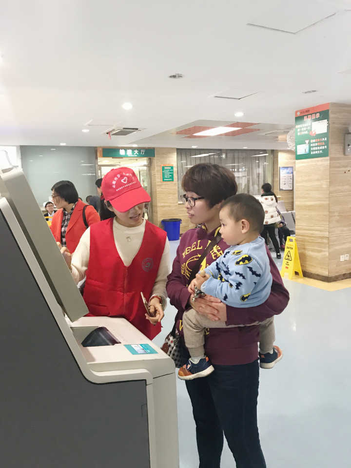 在志愿者服务中,同学们承担了医院导诊与照顾就诊儿童的工作。两天的时间里,志愿者分布在诊室门口、检查室、自助取号机、服务中心等多个地点,主动为前来就诊的患者及其家属提供帮助,指导家长如何挂排队挂号,指引他们寻找各个科室、药房、超市、卫生间等,在就医高峰期的周末有效疏解医院人流,为患者就医及医院高效运转提供了帮助。每日枯燥的引导工作丝毫没有削减志愿者的服务热情,志愿者表示,“虽然每天六点起床乘坐第一班公交车,并不觉得疲惫,看到小朋友们因为自己的帮助及时得到医治,感到发自内心的快乐”。志愿者们贴心的服务受到了医护人员及家长的称赞和感谢。