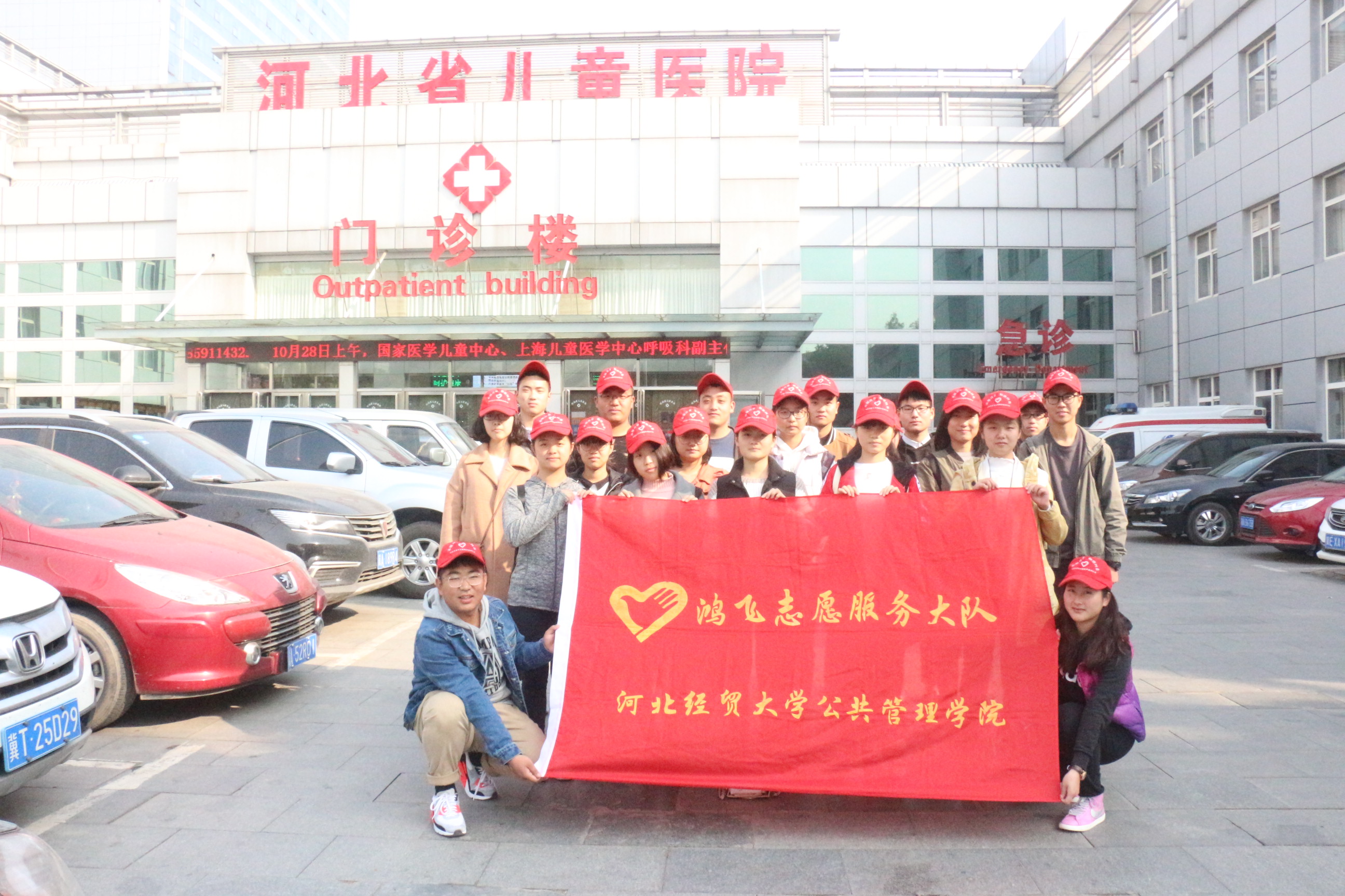 为践行奉献、友爱、互助、进步的志愿服务精神, 11月4日、5日,388vip太阳集团鸿飞志愿服务大队志愿者,赴河北省儿童医院开展“大手拉小手,服务患病儿童”志愿服务活动。