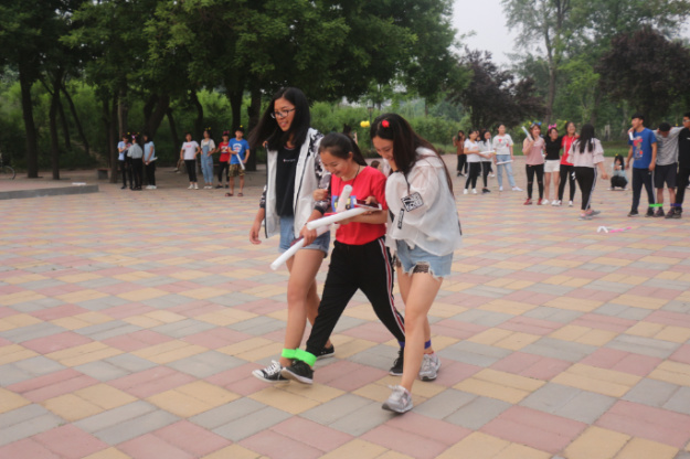 此次素质拓展活动以班级为单位,分为“集体跳绳”、“不倒森林”、“两人三足”和“背夹球”四个环节。“集体跳绳”和“两人三足”环节,同学们喊着口号,互相配合,在游戏中体会团结协作的重要性;“不倒森林”环节独具新意,既考察了团队成员的默契,又考察了同学们的平衡能力;“背夹球”环节将活动推向高潮,参加游戏的同学两人一组,控制背部力度与步伐节奏,当气球顺利运送至终点时,笑容洋溢在每个人的脸上。游戏在轻松的氛围内持续升温,场地上不时传来同学们的欢声笑语。