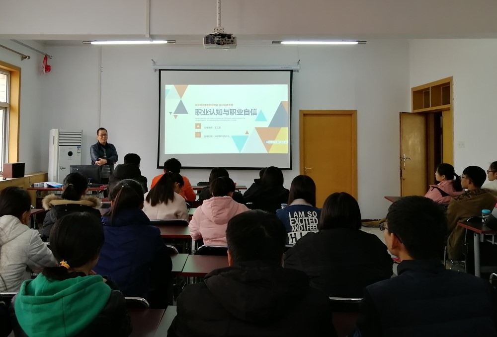 11月27日下午,388vip太阳集团于二办501教室举办第三场就业创业服务月讲座。此次讲座由河北省老员工创业就业1855公益工程秘书长丁江涛主讲,2017级辅导员李斯及50余名员工聆听。