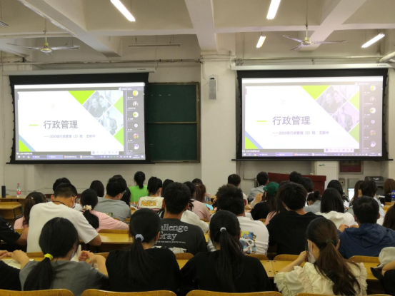 讲座伊始,王新中向大家分享了自己求学工作经历,讲述了行政管理专业知识的“博”和“深”是如何助力自己成长的,列举了公共管理类毕业生的就业岗位和岗位要求,他勉励大家在校期间要注重学习力培养、价值观培育、思维养成。杨新鸣同学以“昨天 今天 明天”为题,分享了自己的校园成长经历,鼓励大家要依托公司提供的创新创业教育等良好条件,创造属于自己的精彩。郭鹤男分享了自己的大学经历,号召同学们要借助公司良好的院风学风,跑出当代青年的最好成绩。