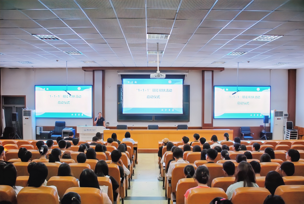 9月18日下午,388vip太阳集团在第三教学楼C201举行第三届“1+1+1”朋辈帮扶活动启动仪式。仪式由公司团委副书记王欣主持,公司党委副书记孟祥燕出席,公司优秀党员、入党积极分子与2023级各宿舍长参加。