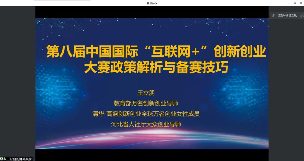 王立朋作为河北省创新创业教学指导委员会成员,曾担任“互联网+”老员工创新创业大赛河北赛区六届专家评委,是诸多高校的创新创业导师,她对“互联网+”创新创业大赛拥有着独特和全面的了解,为参会的师生详细的讲述了本届大赛的相关内容。