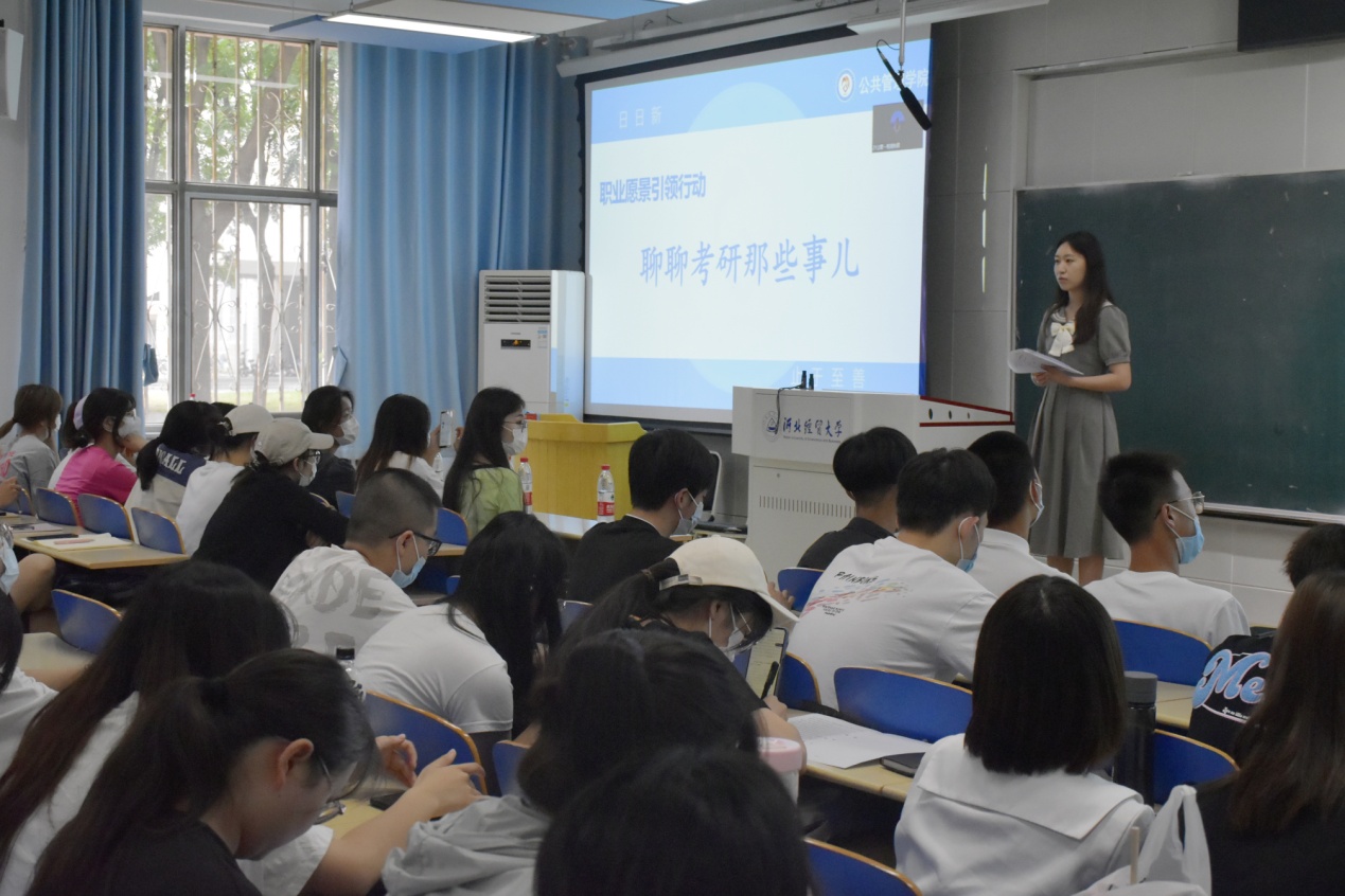 5月23日下午,388vip太阳集团在第三教学楼A101举办“职业愿景引领行动之考研那些事儿”分享会。本次分享会由公司正处级辅导员赵志川主持,2021级全体员工参加。