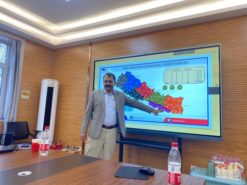 Uddhab Pyakurel首先介绍了南亚地区包括尼泊尔、印度、巴基斯坦、孟加拉国、不丹等国家的基本情况,从地理特征、热点时事、语言体系以及多元文化的比较研究等角度切入,讲解了南亚政治、文化的多样性对其社会和政策的影响,Uddhab着重分析了尼泊尔社会制度、社会结构划分和面临的现实问题,与在场师生分享了自己对南亚社会研究的成果。