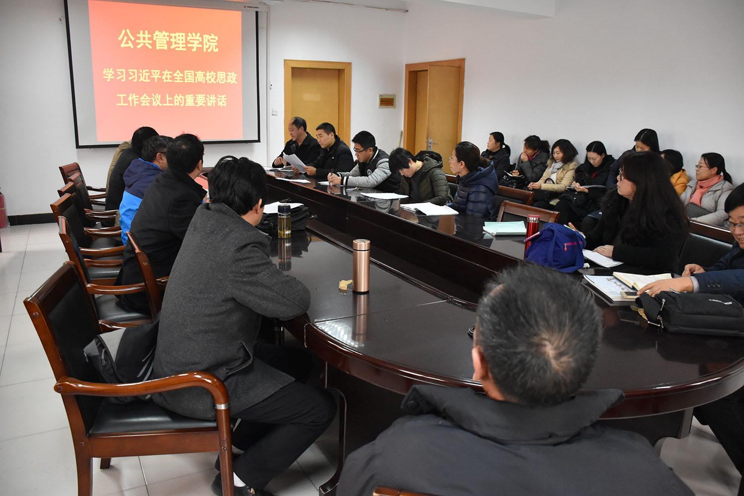 要求全体教师必须按照习近平总书记的要求,传道者首先要明道、信道,认真学习,