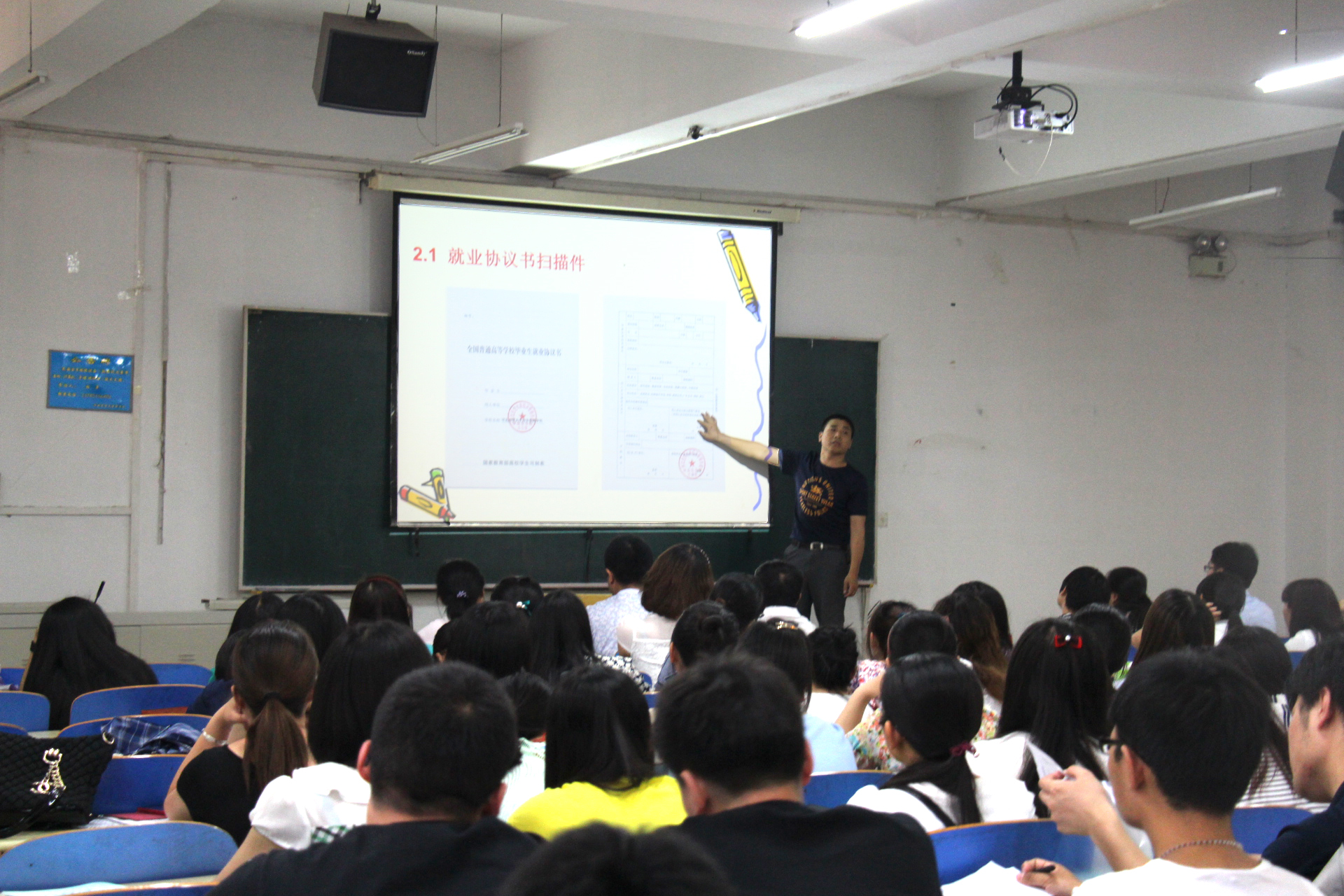 白玉祥就国家及公司就业政策、户口档案关系转接、协议书及报到证的作用等内容进行了详细的讲解,并号召同学们做到文明离校、安全离校、和谐离校。随后,公司分管就业、教务、党团工作的老师分别讲解了各项离校手续的办理。最后,白玉祥提出两点要求:一是全体辅导员要心装“服务”二字,认真做好毕业生的就业服务;二是全体毕业生要常怀“感恩”之心,配合老师工作及时反馈就业动态。活动结束后,老师们就大家提出的具体问题进行了详细解答。