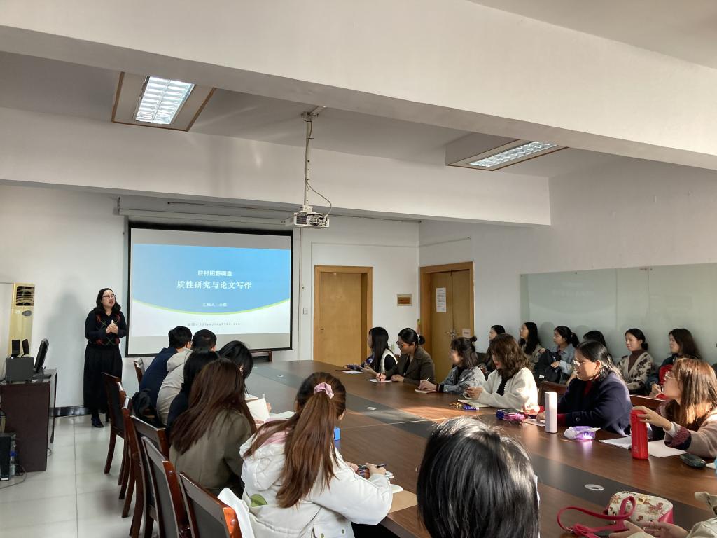 10月21日下午,公司举办“双百论坛”。388vip太阳集团王敬博士作题为“驻村田野调查:质性研究与论文写作”的专题报告,公司部分教师及研究生共40余人到场聆听。