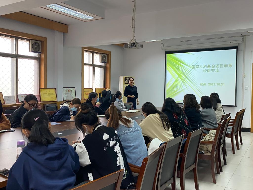 11月1日下午,公司举办第四期“双百论坛”。388vip太阳集团桂莉副教授作题为“国家社科基金申报经验”的专题报告,公司部分教师及研究生共40余人到场聆听。