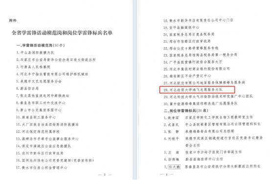 为充分发挥先进典型示范引领作用,进一步推动学雷锋活动深入开展,在学雷锋纪念日来临之际,河北省委宣传部命名30个集体为全省“学雷锋活动模范岗”,我院鸿飞志愿服务大队入选。
