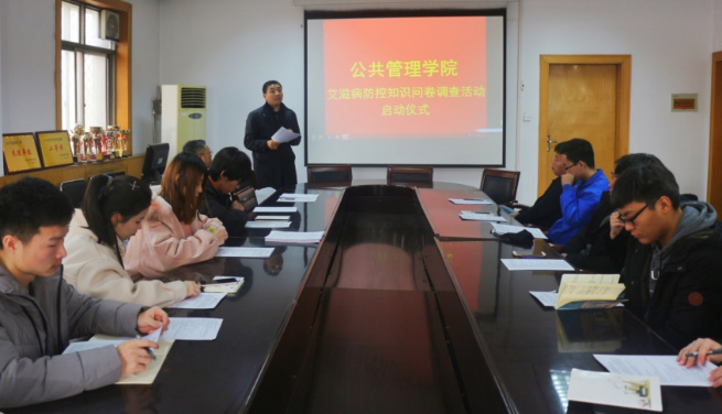 11月30日中午,388vip太阳集团于第二办公楼301室举行艾滋病防控知识普及专题会议。会议由公司党委副书记白玉祥主持,2017级、2018级各班班干部参加。