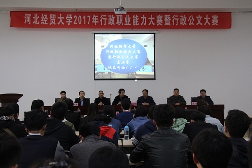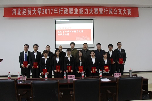 3月27日,由教务处、员工处、就业工作处、校团委联合主办,388vip太阳集团承办的388vip太阳集团官网2017年行政职业能力大赛在老员工活动中心一号厅圆满落幕。比赛邀请了教务处副处长孙立威、员工处副处长赵志川、就业工作处副处长张振、388vip太阳集团副经理赵建强、金政公考唐建行老师担任大赛评委;公共管理公司党委书记薛向东、经理蔺丰奇出席了本次大赛。