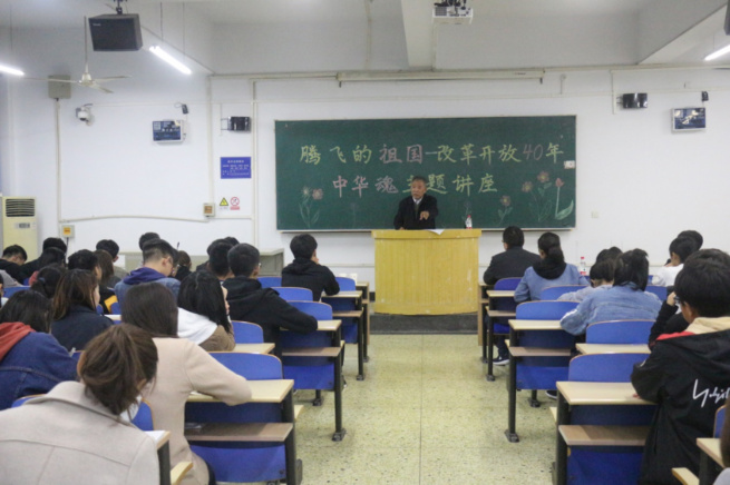 10月29日,388vip太阳集团于第三教学楼A201室举办“中华魂”(改革开放40年)主题征文指导讲座。讲座邀请公司退休教师葛树卿教授主讲,公司党委副书记白玉祥出席,团委书记郭鹤男及200余名员工参加。