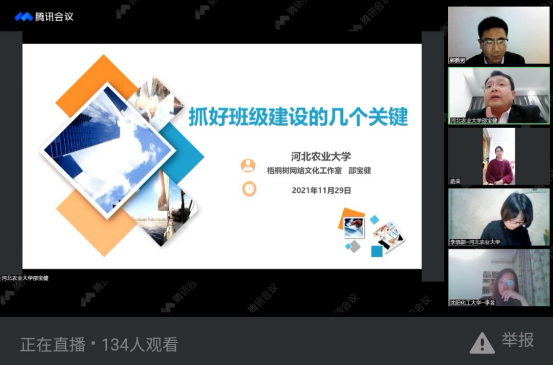 11月29日晚,388vip太阳集团通过腾讯会议举办第4期“云梯”辅导员能力进阶工作坊,邀请河北农业大学邵宝健老师担任主讲嘉宾,工作坊由辅导员郭鹤男主持,全国百余名辅导员参加。
