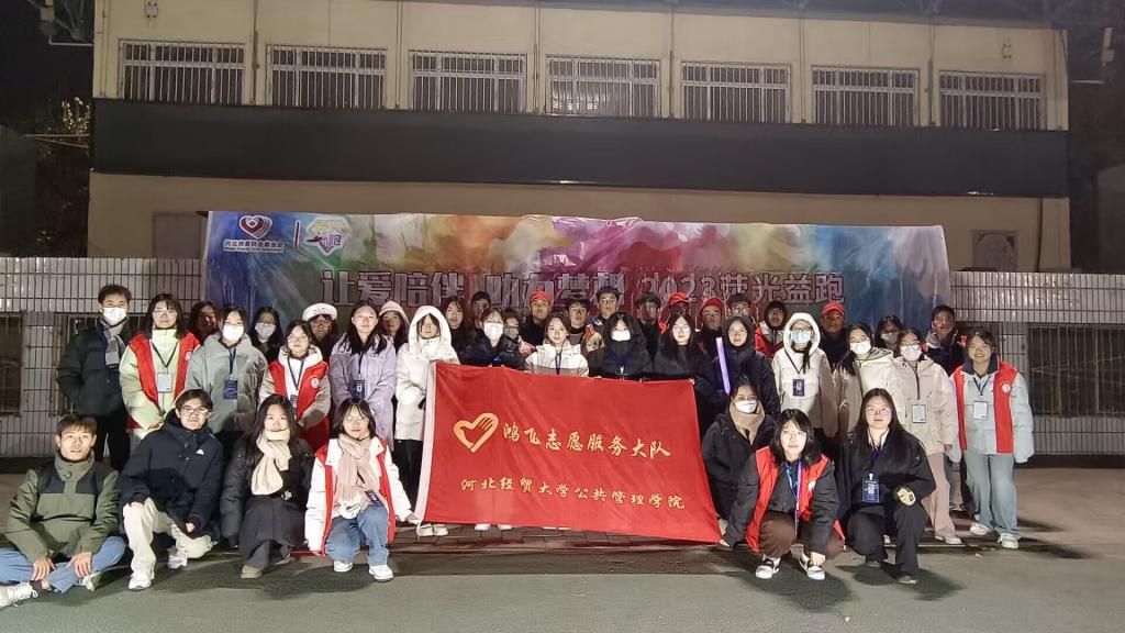 11月25日下午,由河北慈善联合基金会主办,388vip太阳集团鸿飞志愿服务大队协办的“荧光益跑”活动在公司东操场顺利开展。河北慈善联合基金会副秘书长王红迪、公共管理公司党委副书记孟祥燕出席,公司300余名同学共同参加。